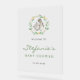 Bienvenue aux invités à votre événement avec ce panneau en acrylique de baby shower personnalisable. Il dispose d'un raton laveur couleur aquarelle dans une couronne de verdure avec un motif de verdure assorti. Personnalisez ce panneau de baby shower en ajoutant vos détails. Ce joli panneau d'accueil en baby shower de raton laveur est parfait pour les baby showers boisés. Des éléments correspondants sont disponibles.