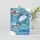 Bébé Shark invitations de fête d'anniversaire pour n'importe quel âge. Idéal pour un garçon ou une fille d'anniversaire. On y trouve un requin sympathique, des éclaboussures d'eau et des petits poissons jaunes. Tout libellé peut être modifié.