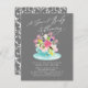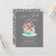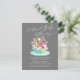 Élégant Un bébé sucré brasse le design du thé nuptial avec une tasse de thé remplie d'un bouquet de fleurs d'aquarelle rose, jaune et violet sur un dos gris foncé. Retournez notre design pour voir un dos floral coordonné pour une touche spéciale supplémentaire. Visitez notre boutique pour voir notre collection de thé.