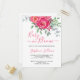 Cette jolie invitation baby shower présente des roses d'aquarelle et des fleurs dans les tons rose et violet avec l'eucalyptus et d'autres feuillages, facilement personnalisable avec vos détails. Parce que nous créons notre propre oeuvre, vous ne trouverez pas cette image exacte d'autres designers. Aquarelle originale © Michele Davies.
