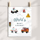 Ce joli panneau d'accueil pour baby shower bébé comprend des illustrations de voiture de dessin animé et de transport, avec une ambulance, voiture de police, et camion de pompier. Il y a aussi de la place pour ajouter le nom de la mère.