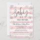 Bandes blanches et roses avec parties scintillant argent flocons de neige baby shower invitation pour bébé fille d'hiver merveilleland douche.