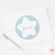 Un autocollant rond personnalisable avec des étoiles blanches mignonnes sur un arrière - plan pastel bleu bébé. Les autocollants sont personnalisables pour que vous puissiez les éditer avec votre propre nom. La couleur arrière - plan est également personnalisable et peut être changée à votre goût.