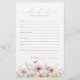 Faites fleurir votre baby shower avec joie avec la carte conseil bébé pourpre en fleurs Fleur sauvage bébé. Cette belle carte de conseil florale apportera une touche de beauté et de sagesse aux premiers jours de votre bébé. Donnez à votre petit le cadeau de générations d'expérience avec cette carte de conseil florale. Les clients aimeront partager leurs conseils parentaux et leurs voeux sincères à votre famille grandissante. Le design est magnifique, avec des fleurs sauvages mauves et une verdure douce, ce qui en fait un complément parfait à un baby shower à thème boisé ou fleuri. Gardez-le comme un gardien précieux des conseils et des souvenirs des êtres chers.