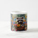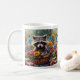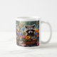 Une tasse en céramique avec l'illustration d'un bébé raton laveur dans un panier de fleurs