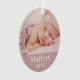 Un ornement photo simple et élégant pour le premier Noël du bébé peut être personnalisé avec une photo de nouveau-né et texte personnalisé pour le prénom. Choisissez d'inclure la même photo sur les deux côtés ou deux photos différentes. La couleur arrière - plan rose rose poussiéreuse peut être changée pour correspondre à vos photos !