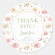 stickers sophistiqués et raffinés pour une douche bébé fille note de remerciement avec délicate aquarelle rose pastel et ivoire chrysanthème fleurs dans un élégant bébé sur le thème de la floraison.