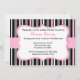 Cette invitation présente une bande noire, rose et grise avec un accent rose. Parfait pour les Baby showers ou les Fêtes des mariées.