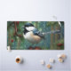 Une mignonne poule noire (Poecile atricapillus) se trouve sur une branche de conifères dans une forêt légèrement brumeuse. Customisez en ajoutant votre propre texte. On trouve le poulet à capuchon noir dans toute l'Amérique du Nord, du nord des États-Unis au sud du Canada et jusqu'en Alaska et au Yukon. Les poulets sont des oiseaux actifs et vivants, connus pour leur appel à la poussette à l'acte qui a l'air enjoué. Ils se nourrissent principalement d'insectes et de graines et sont connus pour leur capacité à mettre la nourriture en cache afin de survivre à de longs hivers froids. L'hippocampe d'un poulet s'étend d'environ 30 % à l'automne et conserve son volume pendant l'hiver, ce qui permet à l'oiseau de se souvenir où il a planté de la nourriture. Au printemps, la mémoire de l'endroit où ces bouts de nourriture étaient cachés disparaît et la taille de l'hippocampe retourne à son volume de pré-mise en cache.