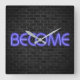 Illuminated urban brick wall with BECOME text in glowing purple neon lights.