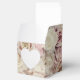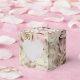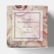 A beautiful bed of roses all-over pattern 2" cube wedding favor box with a cut out heart on the front (no plastic over the cut-out). Your names and thank you message on the top. Click CUSTOMIZE button to CHANGE the fonts, the text, the color of the text - we show deep fig pink. MATCHING invitations, rsvp cards, reception cards and more available in our store.