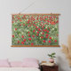The polyester fabric displayed many wrinkles and several sharp creases throughout. At the bottom of the tapestry, I noticed a bulge in the fabric because it was not pulled tight enough before being connected to the wooden boards. It took me over an hour to spay water on the tapestry before putting it on an ironing board where I used a warm iron over a polyester cloth to remove the wrinkles and creases in the material. I was able to get out the wrinkles and creases that made that tapestry look as beautiful as its picture.