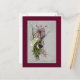 A Victorian Christmas card from the 1800's with pink allium, ferns and a bee resting on Queen Anne's Lace.