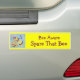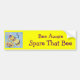 This Bumper Sticker is decorated with a painting of a bee and the words "Bee Aware- Spare That Bee>"