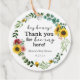 Add these adorable tags to your baby shower favours with these adorable stickers. Featuring "hey honey thank you for bee-ing here", event name and date framed by a watercolor wreath of greenery and sunflowers with bees.