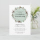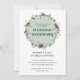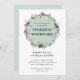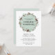 A unique mommy to bee themed baby shower invitation featuring bees and a botanical eucalyptus and cotton floral wreath. Mint green on white.
