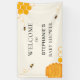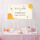 This bee-themed baby shower welcome banner features a watercolor bee hive and bees on a soft cream background.