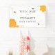 This bee-themed baby shower welcome banner features a watercolor bee hive and bees.