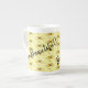 Cette tasse de spécialité est de la porcelaine fine et dispose d'une jante subtilement fluée et d'une poignée élégamment courbée. Le design a un motif composé d'un panier de citrons avec une petite abeille Sur l'avant et l'arrière de la tasse sont les mots "Bee Beautiful!"