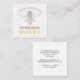 Un élégant apiariste apiculteur miel carte de visite avec une image fantomatique d'une abeille avec une image d'abeille plus foncée sur le dessus, et des blocs de détails de type serif classique. Personnalisez avec votre emplacement, les informations de contact et les sites de médias sociaux au verso de votre carte.