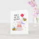 Send a cheerful birthday wish to your loved one with this cute bee greeting card that says “Have a Hap-Bee Birthday!” The front of the card features two happy bees wearing party hats buzzing about in celebration. One bee is carrying a large cake with lit candles and sparklers on top. The second bee is bringing a red balloon to the party. Personalize the inside with your own note of affection to create a special moment and keepsake.