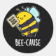 Bee-cause Funny Insect Bee Pun Dark BG Classic Round Sticker