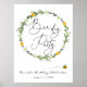 Welcome guests to your beeday party with this fun poster, featuring buzzing bumble bees and "beeday party" in an elegant script surrounded by a wreath of daisies and greenery. Add the guest of honor's name, shower date and custom welcome text using the fields provided.