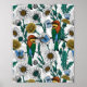 Bee-eaters, blue butterflies and daisies on white poster