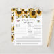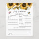 Rustic gender reveal party game card featuring watercolor illustration of bumblebees with sunflowers. Perfect game to play during the shower and will definitely be a great keepsake! The card asks guests to predict what the baby's gender would be and what they would look like.
