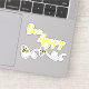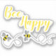 This custom cut vinyl sticker features a black and yellow design with two bumble bees flying about, leaving a dotted trail behind. Text reads "Bee Happy" in a cheerful yellow font. Text can easily be changed to your own message. Font styles, colours and more can be adjusted by clicking "edit design". Many other designs available in my store. Be sure to follow me for new product updates. Thank you for your interest in SapphireDesigns!