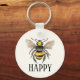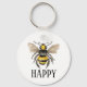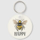 This adorable bumble bee keychain features a watercolor portrait of a bee with the caption "happy".