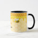 Add some fun and humor to your summer home or work space! Yellow, white background with a honeycomb pattern and happy smiling bees. Decorated with dripping honey. Black colored text: Bee Happy