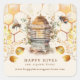 Modern, watercolor Beekeeper / Bee Farm Business sticker. Design features honeycomb illustration, gold leaves , bees, hive and three lines of text on the front. Perfect for Beekeepers, Bee farms.