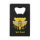 Honey bee with open wings icon over bee hive and honey drops. Custom background colour. Custom text on both sides.
