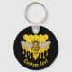 Honey bee with open wings icon over bee hive and honey drops. Custom background colour. Custom text on both sides.