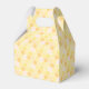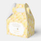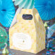 Gable end favour boxes with a yellow honeycomb design and space for personalization.