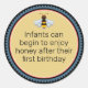 Modern black label bee icon with an infant warning message for honey: "Infants can begin to enjoy honey after their first birthday". Mix and match the available label colours with the different amber shades of your honey products.