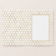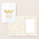 This card features an ornate bee on the front with the work "kind" written below in a script font. There is a border along the outside edge. The front of the card is gold foil on a bright white background. Inside is a gold honeycomb pattern with a white box for you to personalize with a message.
