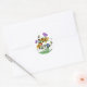 Adorable bee kind stickers featuring two yellow and black bees buzzing around a yellow and orange flower. Two pretty purple butterflies are fluttering around and a red ladybug is walking across a leaf. Over the image in black lettering are the words Bee kind.