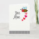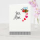 This Valentine's Day card features a cute cartoon bee in the upper right, with a red face, wide eyes, and a friendly smile. Its body has black and yellow stripes, and it has small light blue wings that look like it’s hovering in place. To the left of the bee, the words “Bee Mine” appear in black, handwritten script, like a simple note written with a marker. Under the bee, four hearts fall in a neat line, shifting from light pink at the top to deep red at the bottom, like a little trail of love. The background is off-white and open, which keeps the focus on the bee and the hearts ❤️💌. Along the bottom edge, there’s a narrow strip of gray-and-white gingham plaid that adds a cozy touch without taking over. It’s a sweet design that fits romance or friendship, and it even brings to mind sharing a small treat like 🍫.