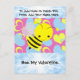 Adorable cute cartoon bumble bee with a pink and blue hearts pattern background and blue sky. Wish your friend a happy valentine's day with this fun kids, girls or childrens school classroom valentine in bright colours.