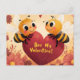 Cette adorable carte postale de la Saint-Valentin est parfaite pour diffuser des vibes sucrées et dignes d'un buzz ! L'avant est orné de deux abeilles joyeuses aux joues roses perchées sur un coeur rouge vif, entourées de fleurs en fleurs et de coeurs florissants. Le message ludique "Bee My Valentine !" ajoute une touche charmante et fantaisiste au design. Le dos offre beaucoup d'espace pour une note manuscrite, avec le sentiment : "Buzzing by to wish a day with love and sourires!"