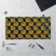 Bee on Sunflower Flower Pattern Design Black Desk Mat