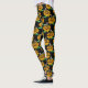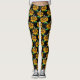 Bee on Sunflower Flower Pattern Design Black Leggings