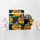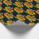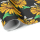 Bee on Sunflower Flower Pattern Design Black Wrapping Paper