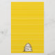 A yellow lined stationery paper decorated with a vintage bee skep and bees buzzing about sketched with marker on a yellow background. Nice for writing letters, journalling, lists, and more.