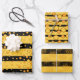 Bee Stripe Patterns Yellow and Black with Hexagons Wrapping Paper Sheet