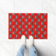 Doormat in mixed media digital design based on a stylized beech leaf - black and pale silver grey / grey leaves on a vivid, true red background