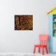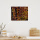 This poster features a lovely impressionistic design of a beech tree forest in brilliant autumn colours of red, brown, yellow and gold. A few dark brown trunks are peeking through the leaves.