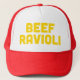 BEEF RAVIOLI fun and bold slogan on trucker hat, yellow, ironic, typography, funny statement, inspired by tv character frank rossitano. beefy ravioli. dat pasta. original.